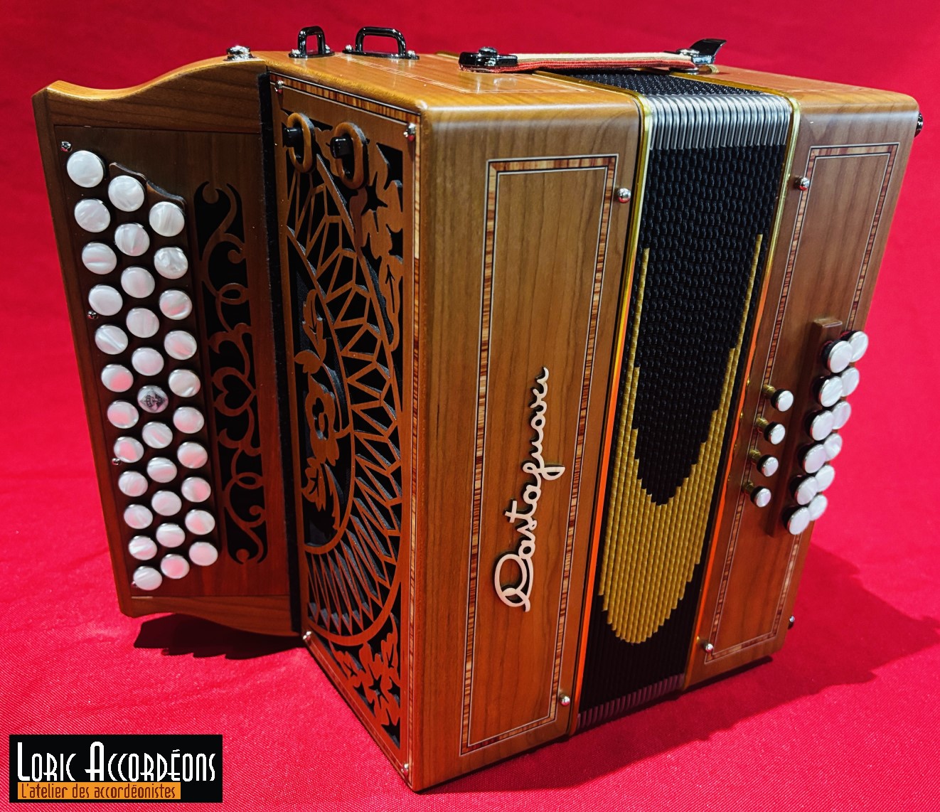 Dans la mesure du possible, nous pouvons personnaliser votre instrument : Couleurs des boutons et feutres de boutons, couleurs des bandes de soufflets. Peinture sur votre instrument, etc … Pour toutes informations, nous contacter.